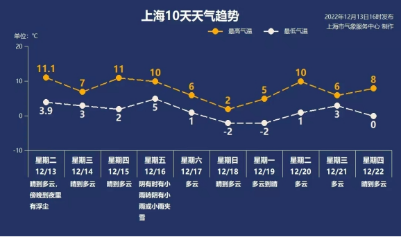 根据上海市气象局预报,一股强冷空气即将到达上海,受其影响16日上午起气温将明显下降,16-18日48小时最低气温降幅可达8~10℃;18-19日早晨市区最低气温零下3℃左右,郊区零下6℃到零下4℃,有冰冻或严重冰冻。由于近期冷空气活动频繁,此次寒潮过程与前期降温影响叠加,需特别关注低温冰冻对水管冻裂、能源保供、疫情防控等影响。